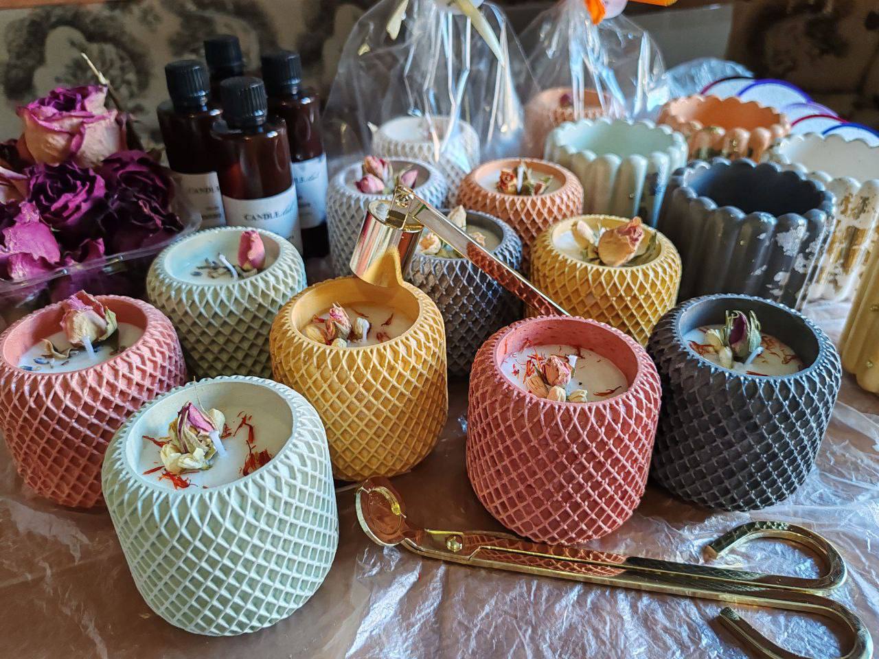 Аромат желтой свечи: День в спа Аромат синей свечи: Лаванда Аромат розовой свечи: Твой комфорт