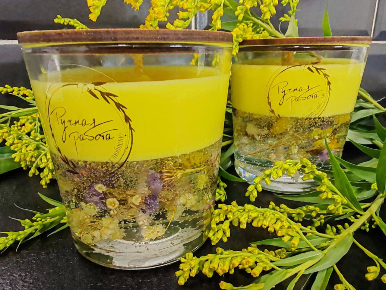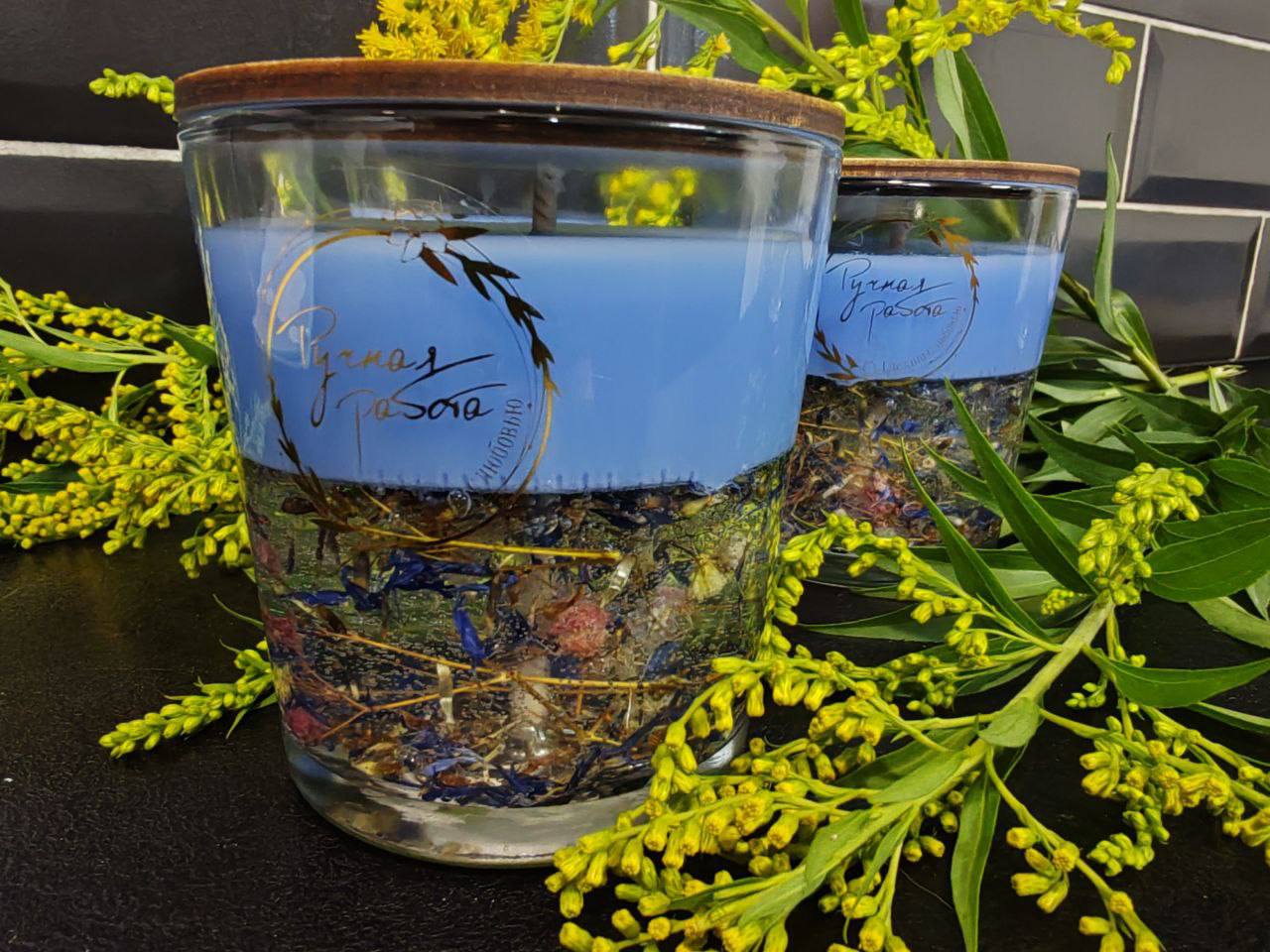 Авторская свеча ручной работы, в которой сочетаются мягкий аромат, эстетика природы и уют домашнего тепла. В нижнем слое — прозрачный гель с настоящими сухоцветами, бережно сохранёнными в смоле. Верх — бархатный соево-кокосовый воск нежного розового, желтого и синего оттенка который создает атмосферу спокойствия и гармонии.